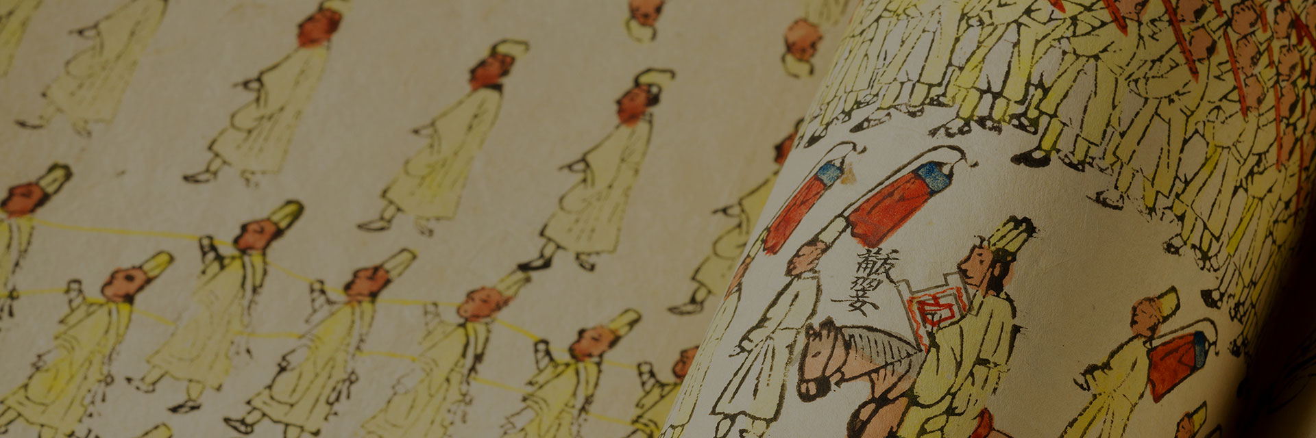 Documentary paintings, or Banchdo, in the Uigwe portray figures participating in rituals and ceremonies and related objects at predetermined locations. Mainly, processions or the progress of events are depicted. Names or numbers are written next to the figures and ritual objects. Only ritual or ceremonial objects are shown in some Uigwe with no figures, but in other cases, figures and related objects are indicated only with text. Documentary paintings were produced before events were held in order to consult when preparing upcoming events and to check for errors in the preparations. Modifications made while holding actual rituals and ceremonies were reflected when completing Uigwe.